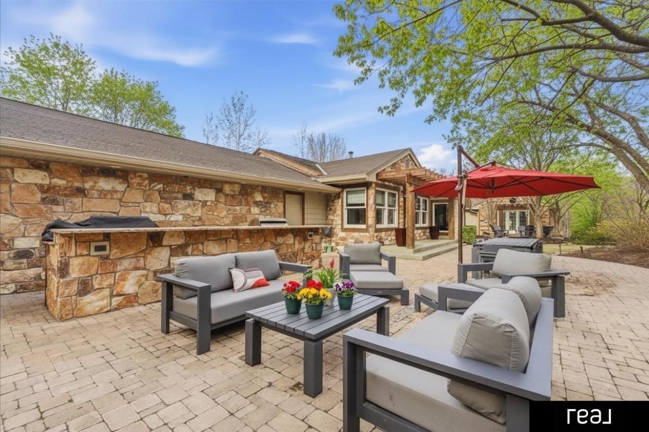A rare 7-car garage completes this exceptional property, where luxury, comfort, and thoughtful design come together to create an unparalleled living experience both inside and out, highlighted by beautifully landscaped grounds that feel like a private retreat with a cascading waterfall, outdoor fireplace, fire pit, gazebo, and fully equipped outdoor kitchen-perfect for relaxing evenings or entertaining-while inside, refined finishes and intentional spaces shine, including a chef's kitchen with commercial-grade appliances, granite countertops, and custom cabinetry that flows seamlessly into the main living areas, a stunning primary suite with soaring ceilings, direct patio access, and a spa-inspired bath featuring a soaking tub, large tiled shower, spacious walk-through closet, and convenient main floor laundry, plus en suite baths in every bedroom and a finished lower level complete with a wet bar, expansive family room, fitness area, flex space, and guest accommodations.